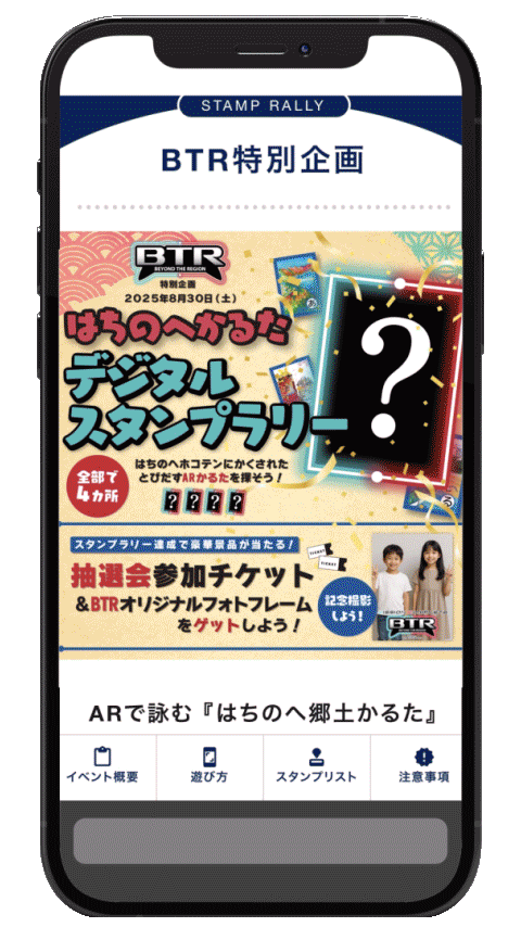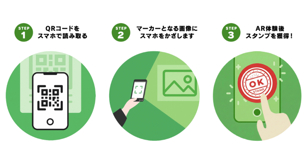 ARフォトスポットを組み合わせて体験できるスタンプラリーを提供します。スタンプスポットは6か所まで設置可能です。