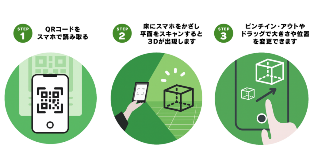 スマートフォンで右のQRコードを読み取って床やテーブルなどの平面にかざしてください。