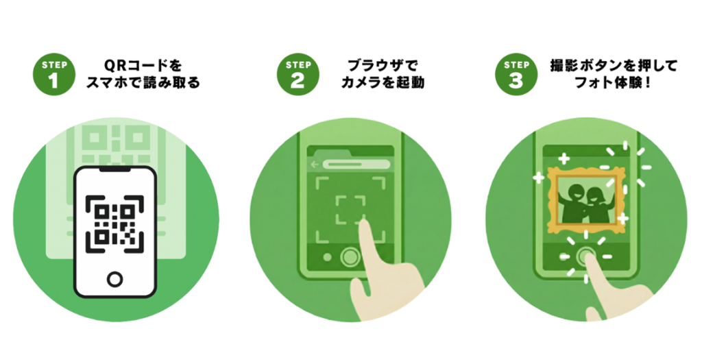 WebARだからアプリダウンロード不要で誰でもすぐに参加できます。