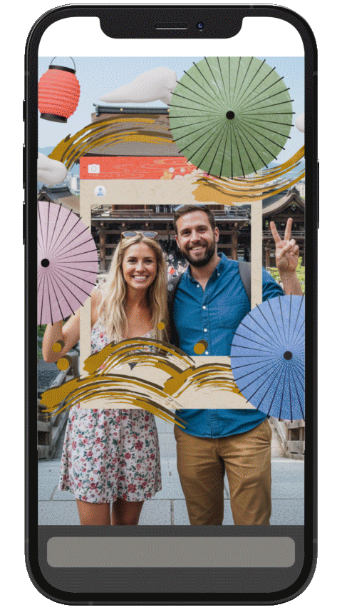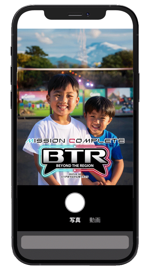 現実の風景にデジタルなフレームを重ねて撮影できる
